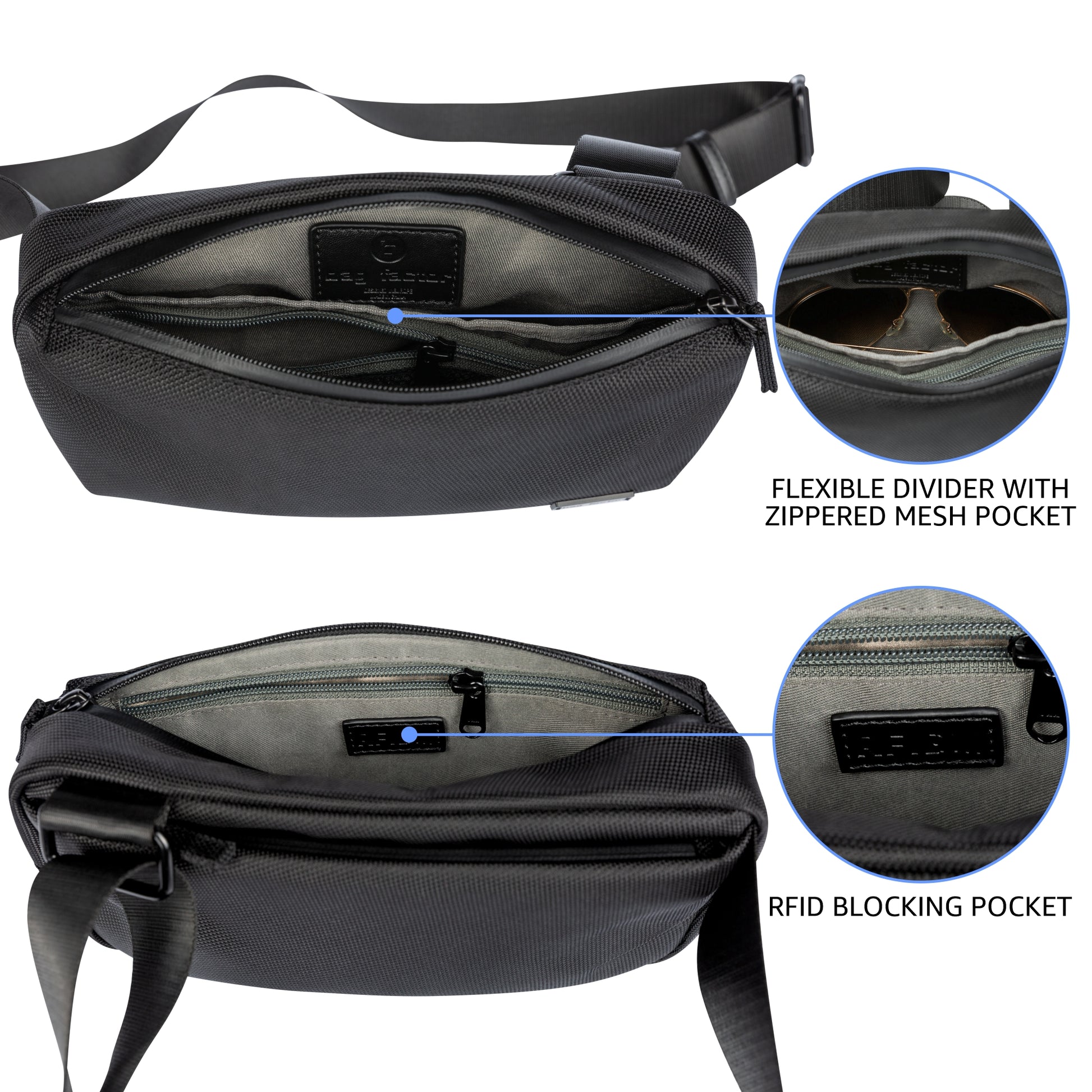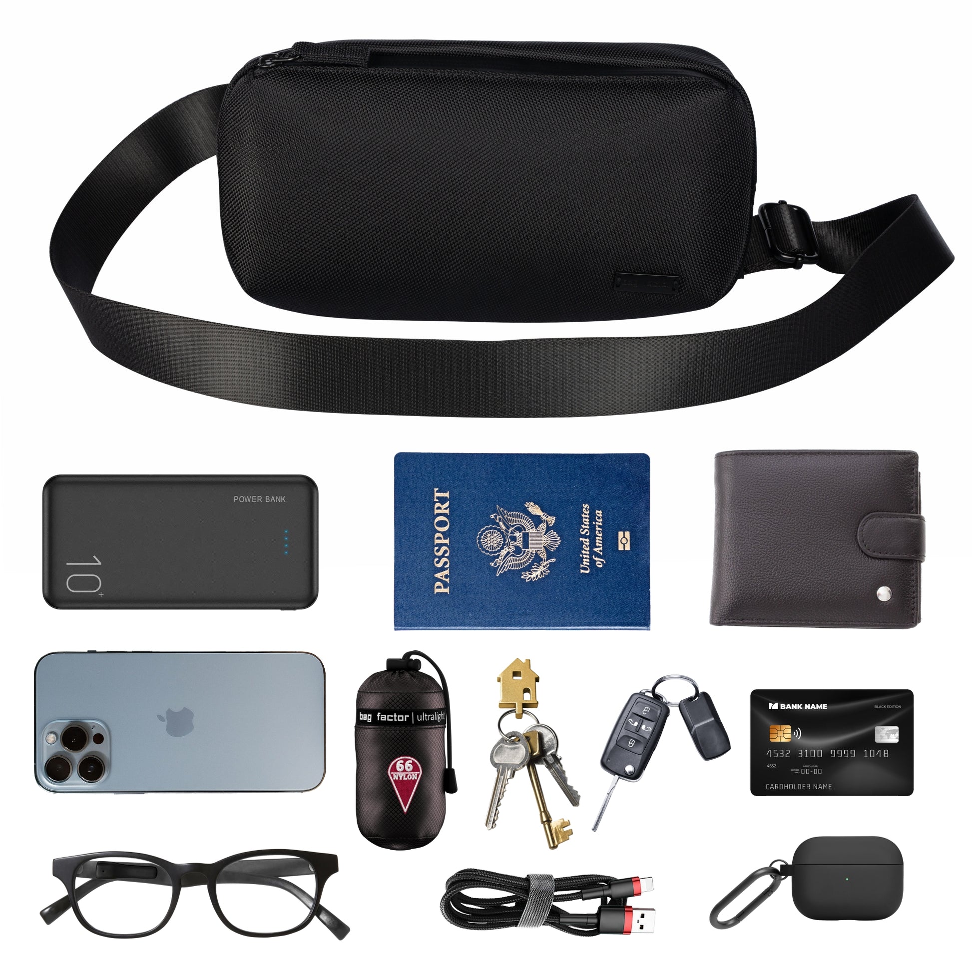 Bag Factor Small EDC Minimalist Crossbody Sling Bag for Men and Women – RFID Phone Bag Wallet – Chest Shoulder Low Profile Backpack (Small/Black))