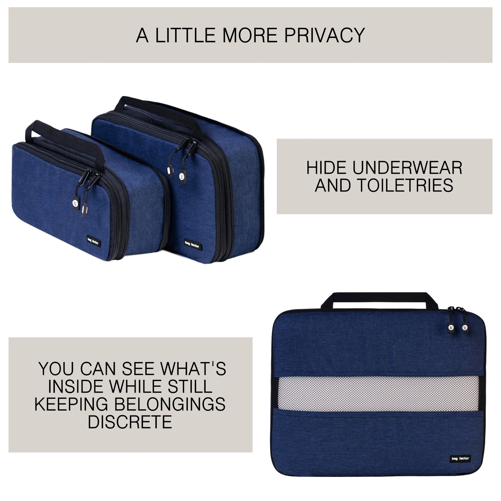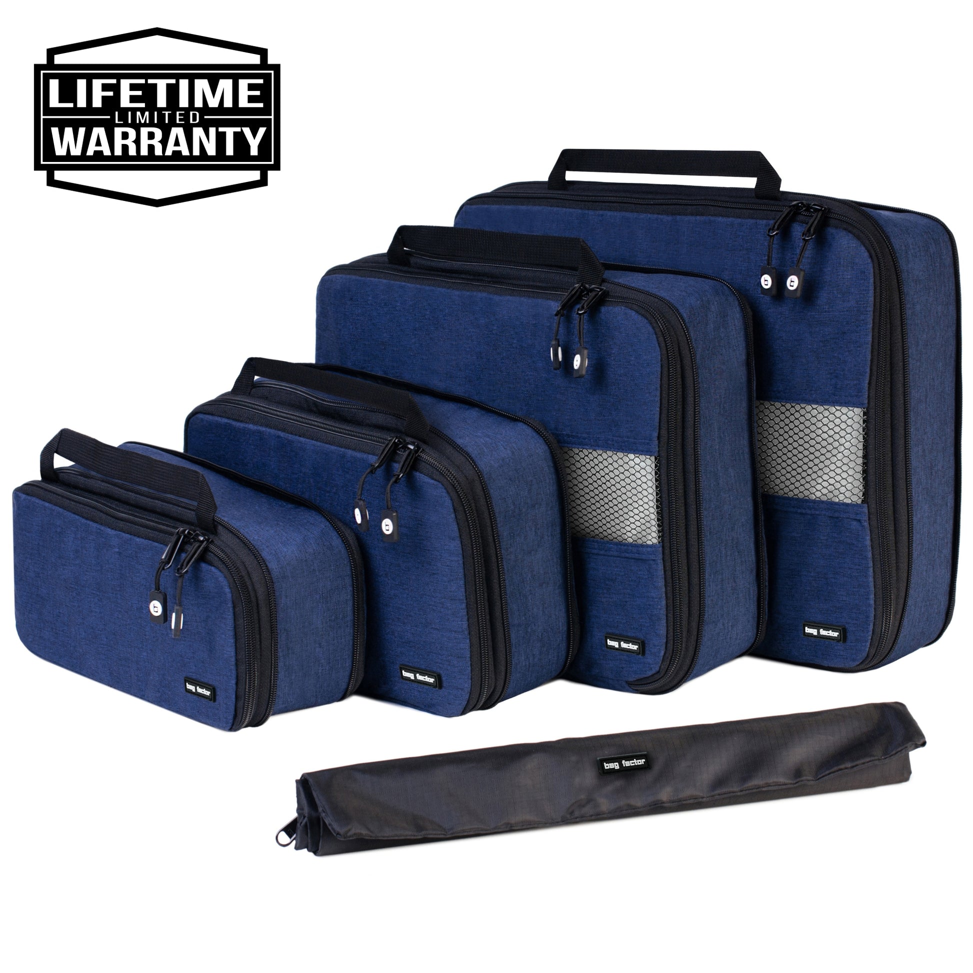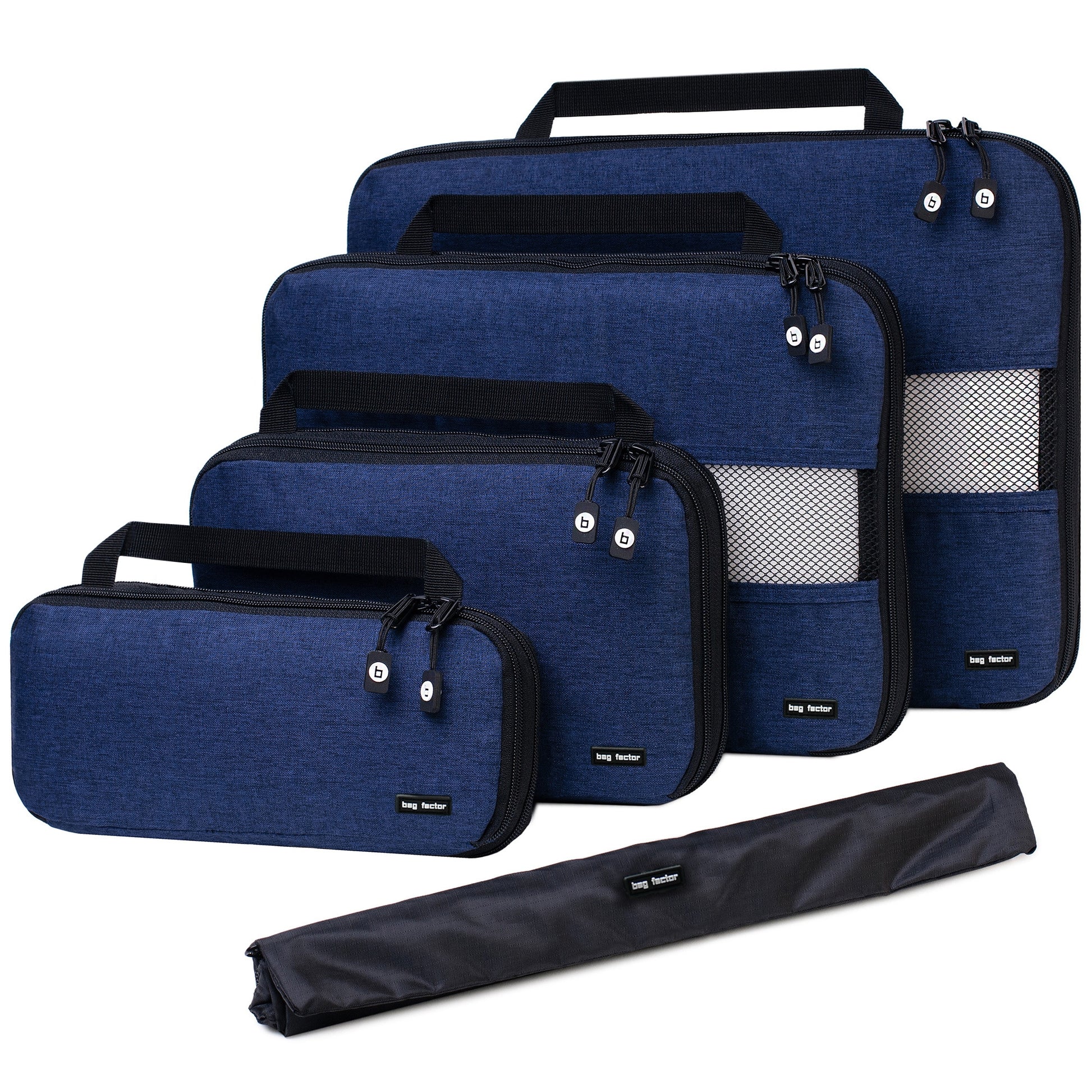 Compression Packing Cubes for Travel - Bag Factor Premium Luggage Organizer Set (Navy Blue)